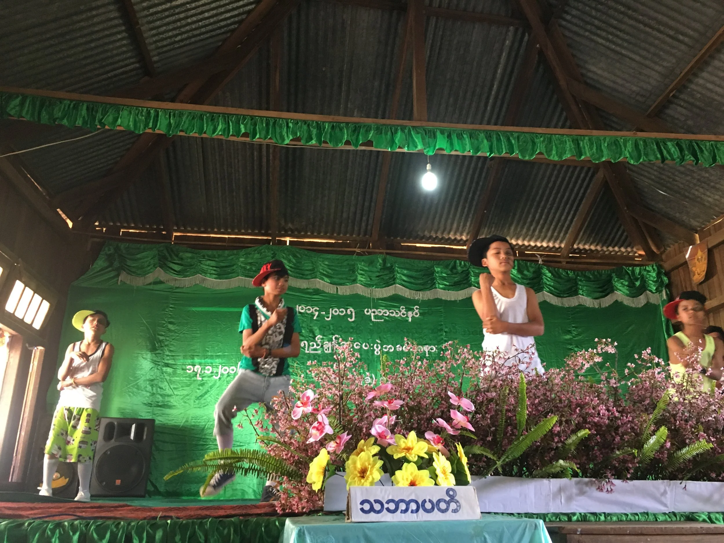 When we arrived the place was in full swing - school children dressed in an array of outfits ranging from cultural dress to what can only be described as Burmese-inspired-hop-hop attire - we’re talking baseball caps, tucked in singlets and basketball shorts, with the ever-present Burmese sandal. We joined the villagers in the main school hall, packed to capacity the place was teeming with what must have been the entire mountainside. Once at capacity we were treated to what I suspect was a local talent-quest, group after group of school children dancing on stage. They were overjoyed at being able to perform for the village, and watching them cavort and muck around on stage was genuinely quite touching.