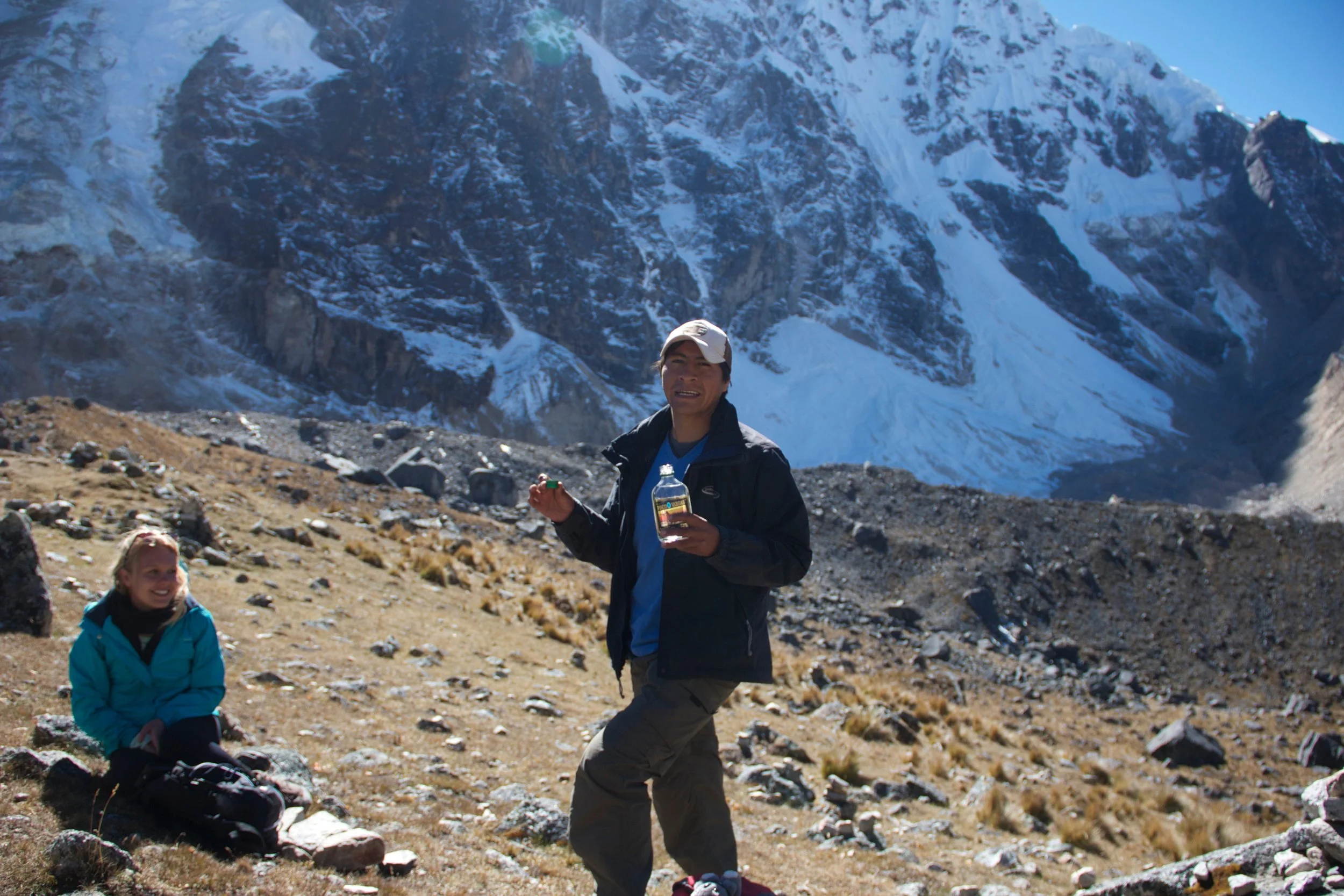 Some shots of pisco at the Apacheta Pass