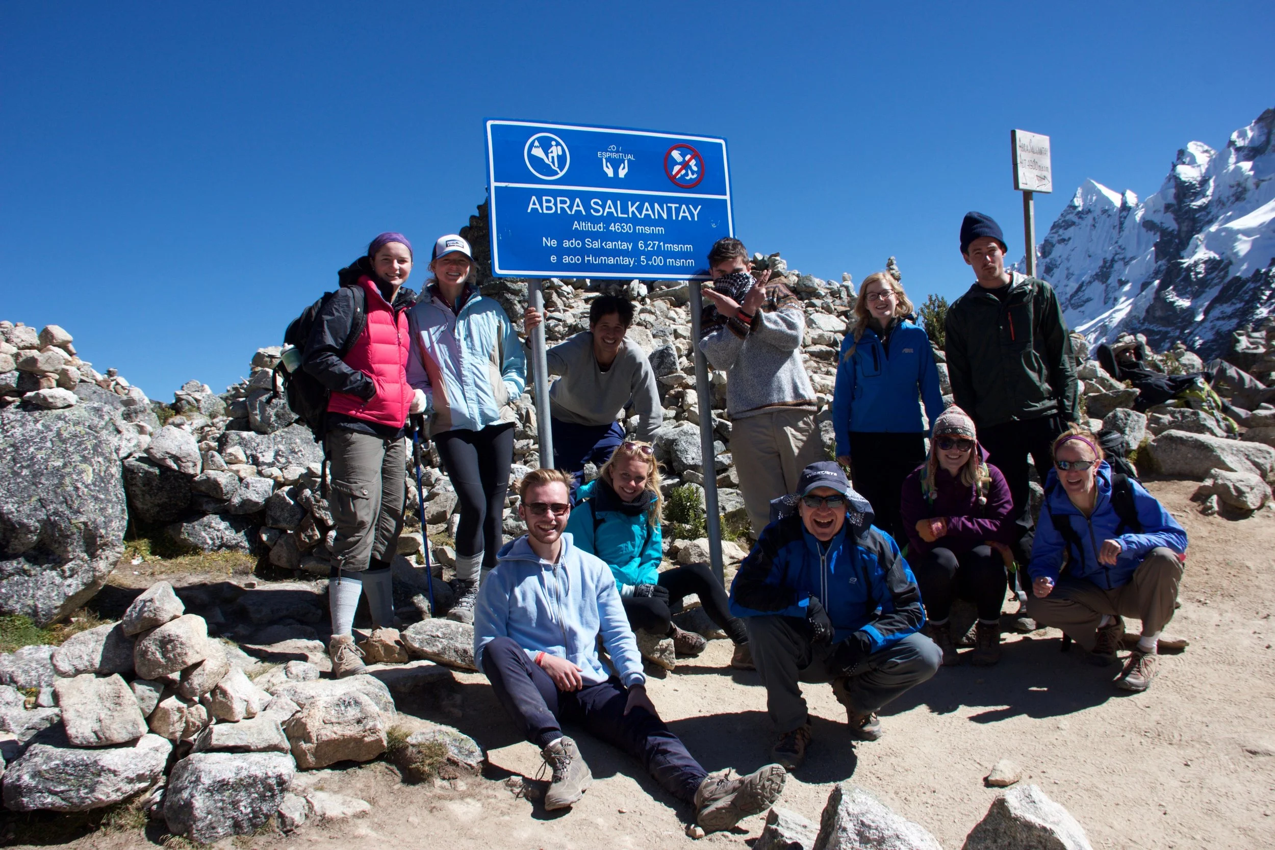 Gang at the Apacheta Pass viewing Mount Salkantay